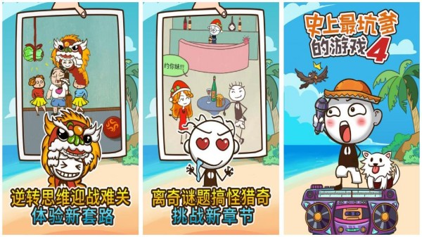 它是一款充满层出不穷恶搞元素的脑洞挑战小游戏,通过提供二十四个其乐无穷脑洞大开的趣味竞技关卡,令玩家朋友们可以尽情展开乐趣十足的挑战。《史上最坑爹的游戏4》无论是思维逻辑挑战内容,还是整理立绘风格、背景音乐,都极致搞笑逗趣,能够带给玩家朋友们满满的欢快与恶搞趣味。