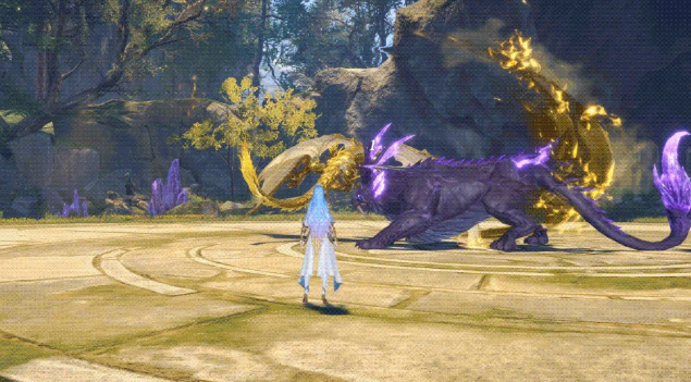 奥义“黄金圣龙体”为核心强化技,开启后黄金龙附体,进入“龙躯”状态:获得强霸体抗性、全源减伤,并延长所有已生效增益效果的持续时间;另一奥义“龙战”为无施法前摇召唤技,根据当前伏虎/穿龙层数动态结算伤害,实现形态资源与终结输出的高效转化。