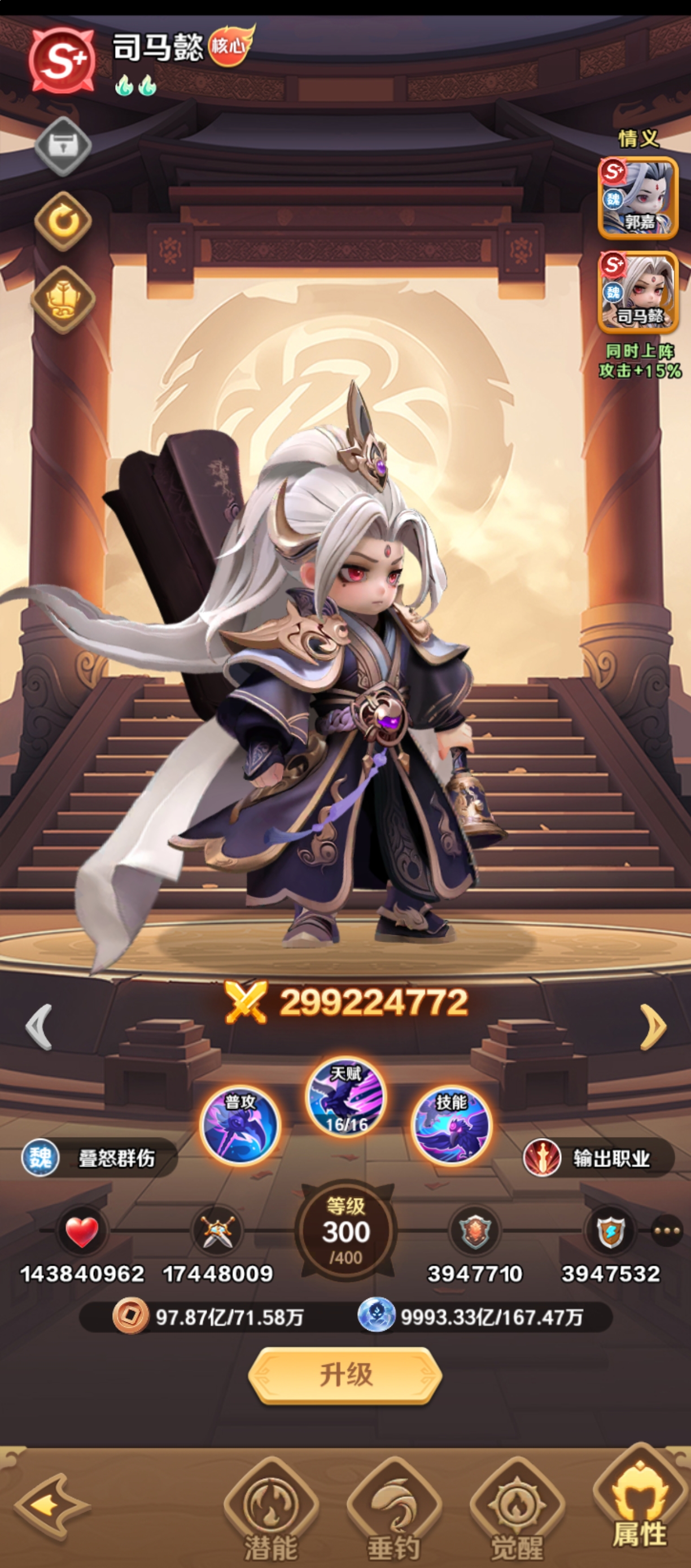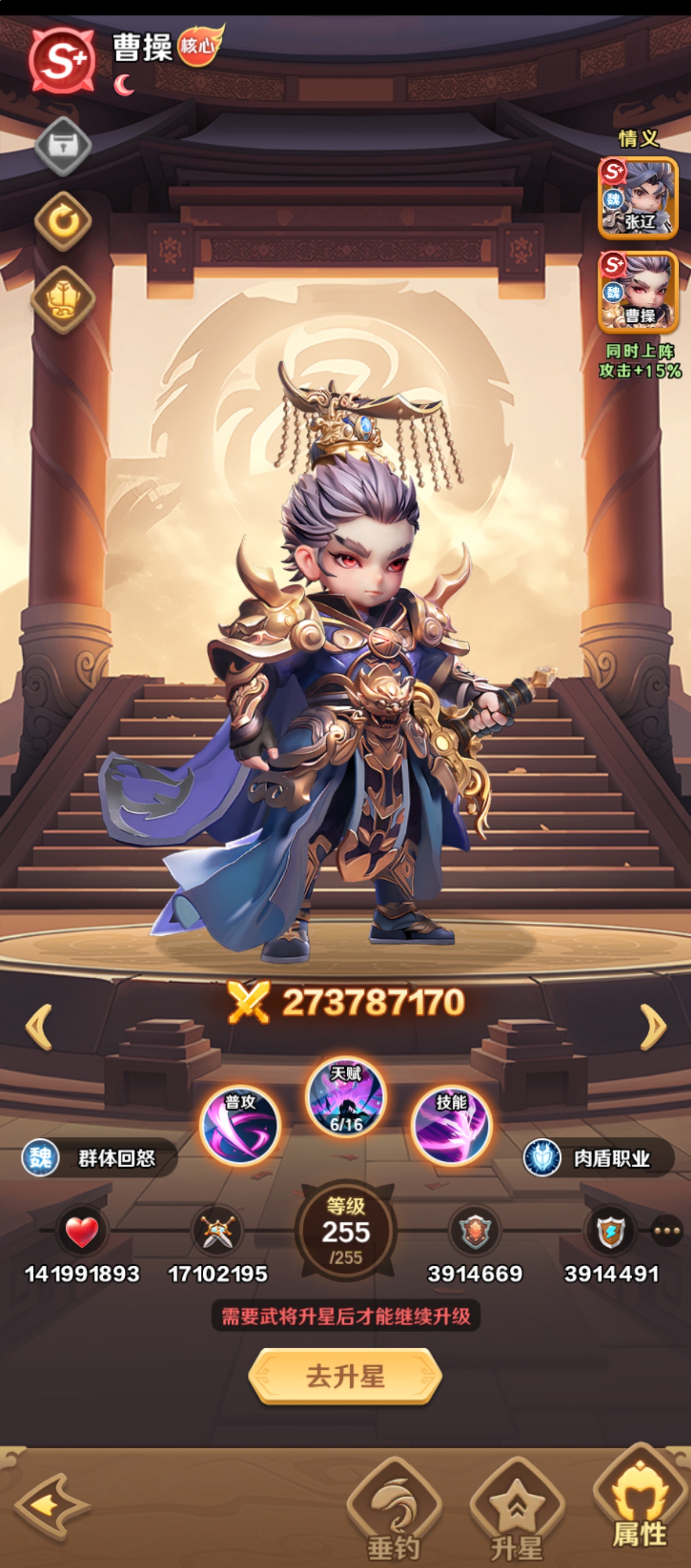 开局阶段资源有限,切忌平均分配。建议优先锁定1至2名核心输出武将进行集中培养,推荐选择关羽、吕布或司马懿——这三者均具备高成长性与泛用性。重点提升其星级与主动技能等级,确保在前中期拥有稳定清场能力;辅助类武将则维持基础星级与关键技能解锁即可,无需额外投入大量材料,以保障主力C位的成型速度。