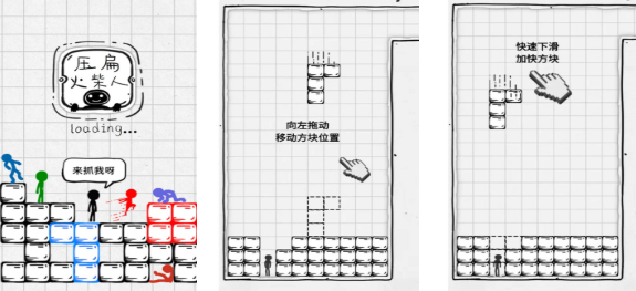 这是款将俄罗斯方块和火柴人元素进行融合的轻量级游戏,主要任务就是放置方块尝试压扁火柴人,这种简约画风的特殊消除类游戏耐玩性十足,自由压扁火柴人的游戏设定互动性也更强一些,简单的点触操作即可控制方块的落点,各种颜色的可爱火柴人都可以不断压扁获得解压的快感。