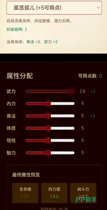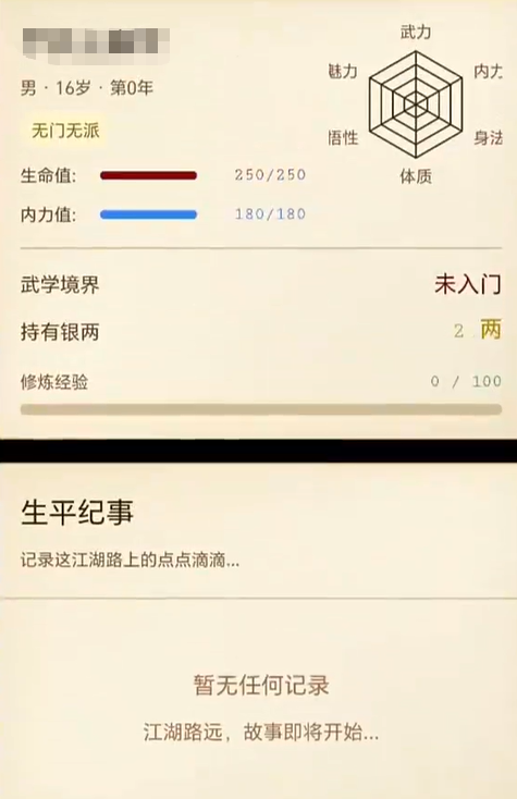作为一款无广告干扰的文字类武侠人生模拟作品,《武侠人生模拟器》强调自由成长与多线叙事。游戏开局,玩家将扮演一名初入江湖的无名少年,通过自主分配属性点(如根骨、悟性、膂力、身法等)塑造角色发展方向——可走正道侠客之路,亦可踏入邪派歧途,甚至隐居山林研习奇门遁甲。每一次加点都将影响后续事件触发概率与剧情分支走向。