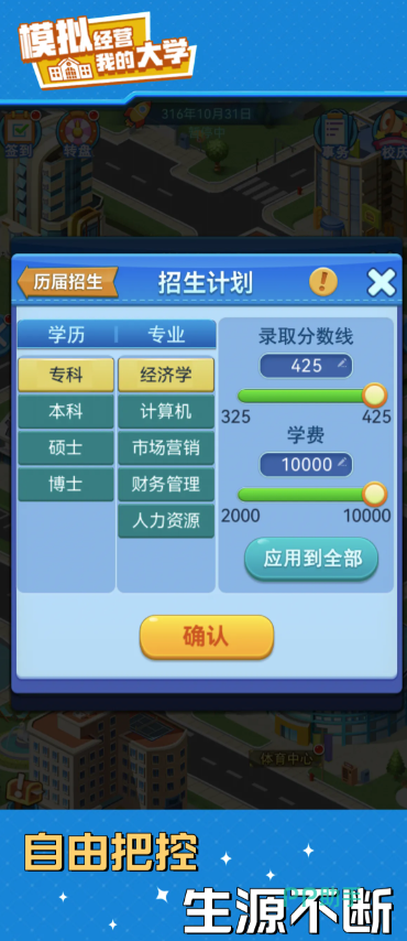 完成建筑建设后,玩家可自主设定各专业录取分数线及学费标准,灵活开设文、理、工、医、艺术等多类学科方向,并统筹安排学生课程、住宿、社团活动与课外实践,构建个性化育人体系,持续吸引优质生源,推动学校综合实力稳步跃升。