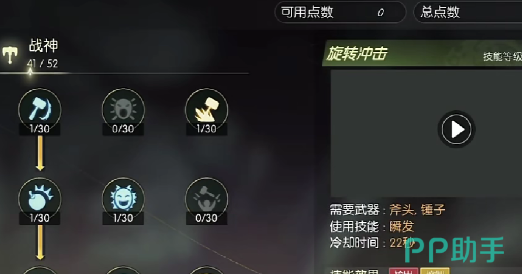 旋转冲击技能释放期间,战神会处于旋转状态,并且无视任何的控制技能,该技能可以作为机制处理技能存在,整体的伤害也不俗。