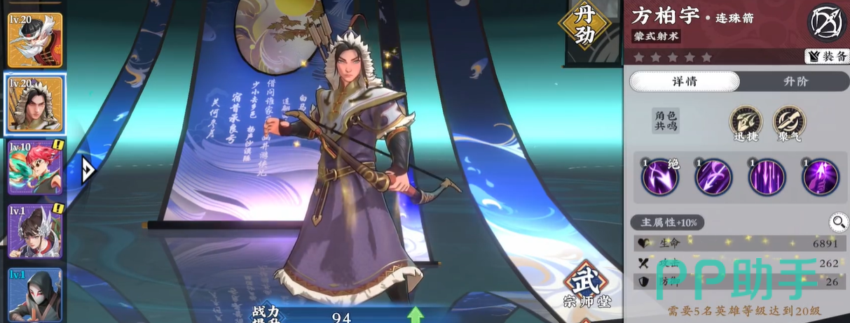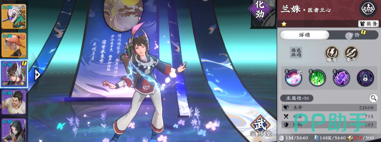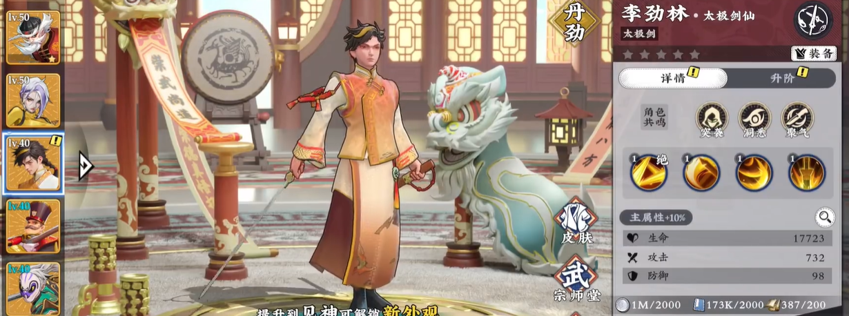 以李劲林为例,其专属技能“太极剑仙”赋予其突袭、洞悉、聚气三重共鸣标签;这意味着在构建阵容时,需优先引入同样具备任一上述共鸣的其他英雄,以形成稳定触发条件。而医者角色兰姝仅拥有爆发与聚气两种共鸣,虽与李劲林共享“聚气”,但因缺少另两项共鸣匹配,无法参与更高阶的三重共鸣联动。因此,在追求最大化羁绊收益的前提下,应优先选择共鸣标签完全一致的英雄组合,兰姝更适合作为功能补充或过渡阶段人选。