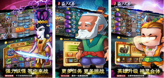 根据超高人气的葫芦娃动漫进行改编。1:1复刻了动漫中的经典剧情,还采用了独特的剪纸画风进行展现,给玩家带来了极强的视觉效果,这里有人们非常熟悉的葫芦娃七兄弟以及善良的爷爷等等,主要讲述的就是爷爷被邪恶的蛇精困住,而葫芦七兄弟。会想尽各种办法拯救爷爷,在这条道路中虽然披荆斩棘,会面临很多的困难和难题,但是通过相互合作的方式,最终成功拯救爷爷。