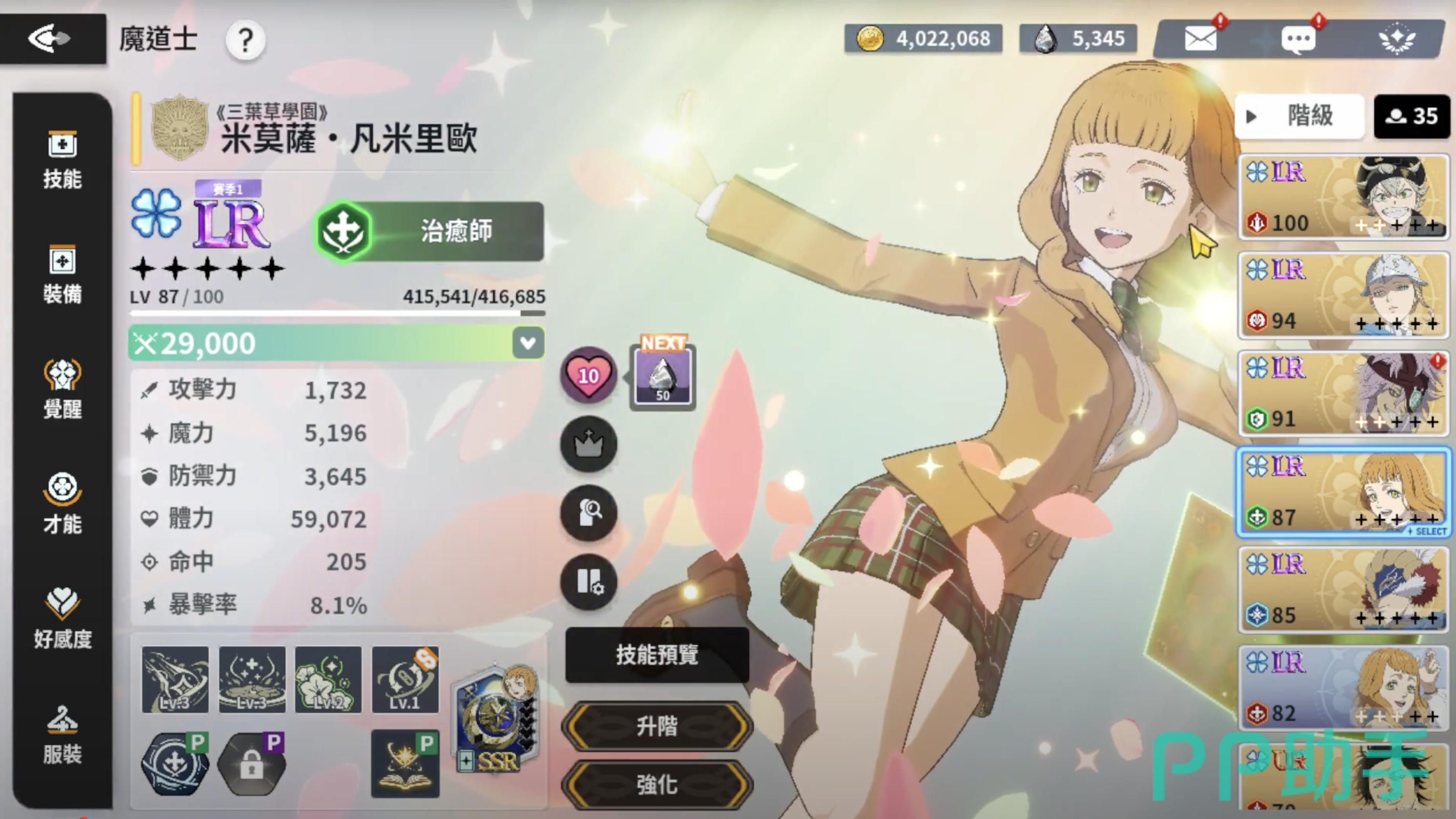 总体来看,米莫萨是一位综合表现极为出色的SSR治疗角色。她兼具群体治疗、异常状态解除以及增益强化三大功能,几乎没有明显的战术短板。无论是在推图、刷本还是竞技对抗中,都能发挥不可替代的作用。以上就是关于黑色四叶草魔法帝之道米莫萨怎么样的详细分析内容。