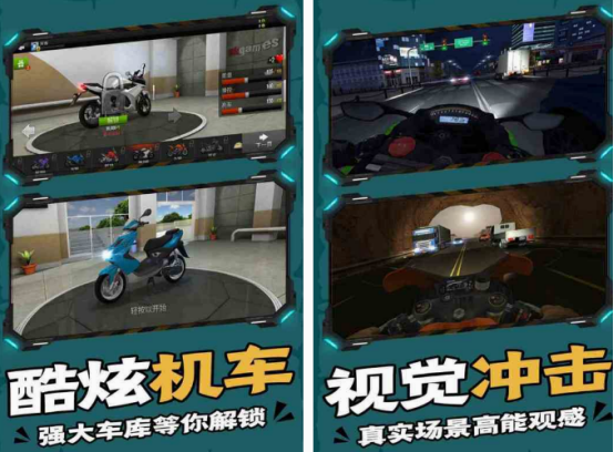 本身的男孩子就有很多喜欢骑摩托车,所以这款以摩托车模拟为主的游戏,也是不错的选择,里面收入了超多类型的摩托车,可自由选择,还有多种游戏模式以及难度级别,需要根据自己的实力以及喜好选择。还能通过控制摩托车,刹车、加速等方式来避开其他的车辆,如果能顺利到达终点的情况下,就可以在竞速游戏当中取得胜利,整体的画面音效非常逼真。