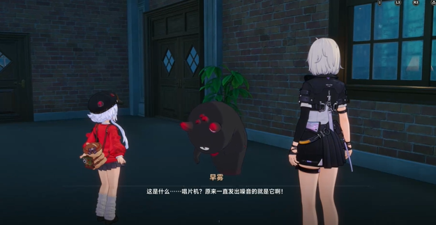 沿巷道行至尽头,可见一座独立二层建筑。拾级而上进入二楼空间,将触发专属剧情事件,遭遇NPC早雾与鬼郎丸。经对话揭示,遗失的唱片机已被鬼郎丸吞食。经历多轮交互抉择后,玩家方可成功取回设备,并须返回任务起始点向西德交付道具,完成全流程闭环。