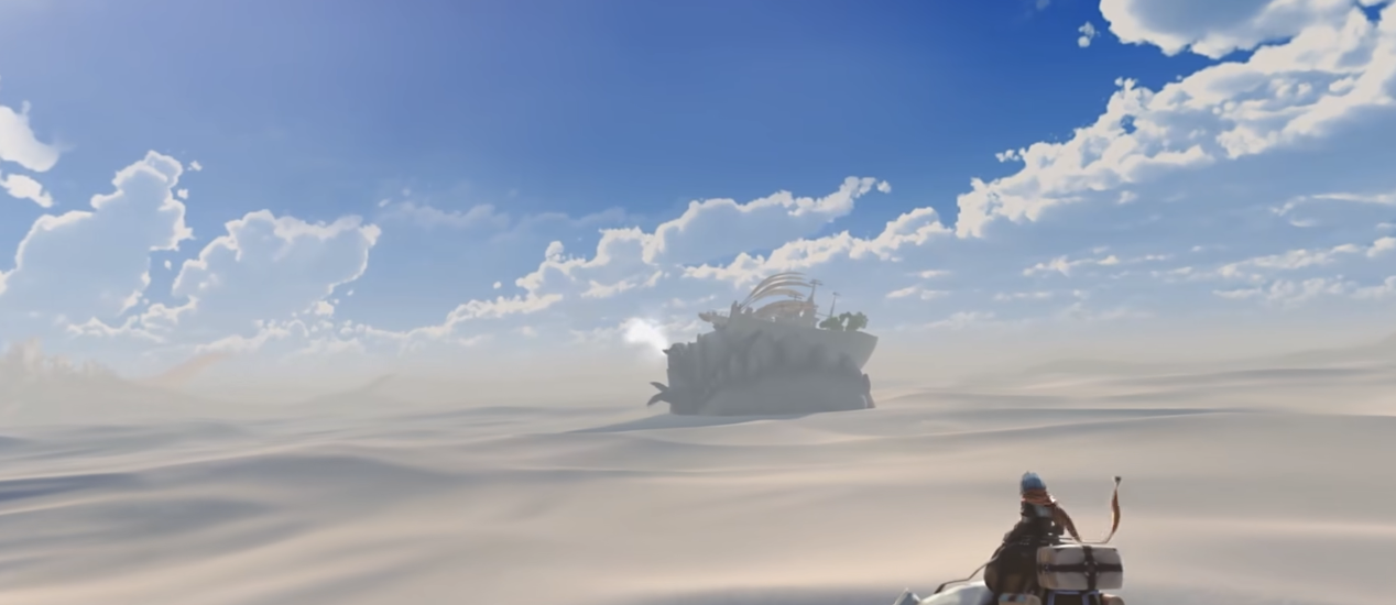 游戏PV开篇便呈现了一幕令人动容的场景:一头年逾百岁的巨兽在生命的终点缓缓沉入白沙,其背上的完整人类聚落清晰可见。这一画面不仅揭示了世界的残酷法则,也凸显出个体在宏大命运下的渺小。正是在这样的背景下,海巡兽成为连接生存与探索的重要桥梁。
