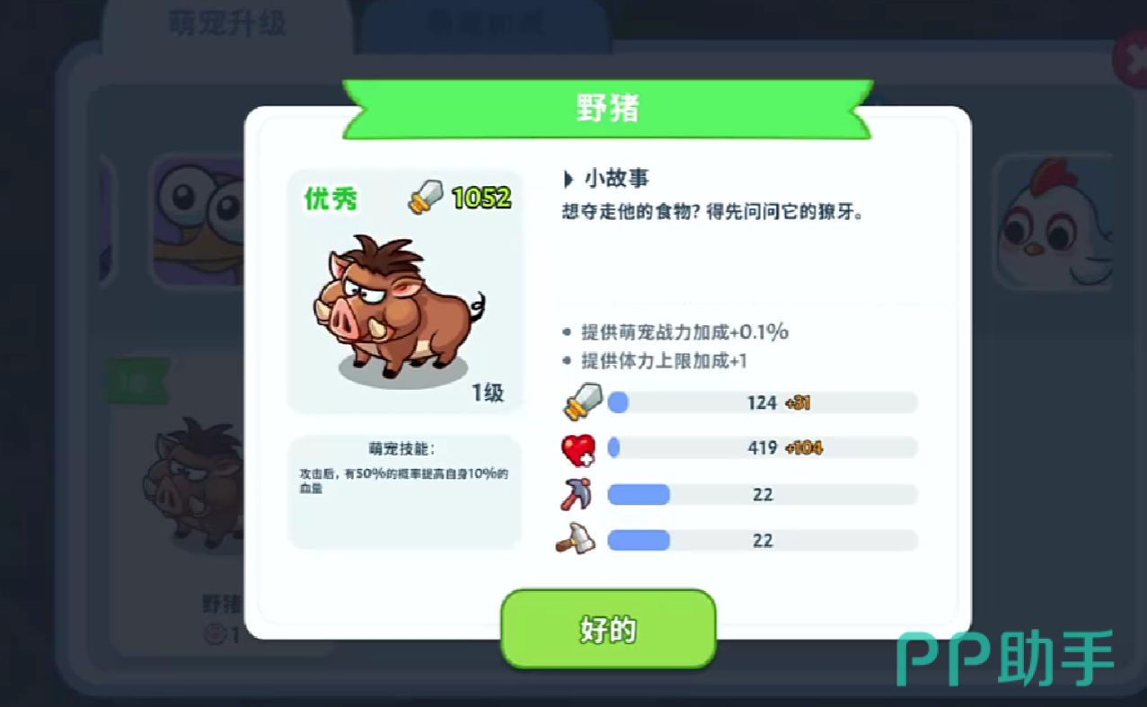 游戏内的冒险玩法,需要玩家消耗一定量的体力数值,当玩家的庄园正处于作物生长期间时,可以派遣小动物进入到冒险挑战内,挑战地图关卡,从而获取金币和钻石,帮助自己解锁更多的作物种类。