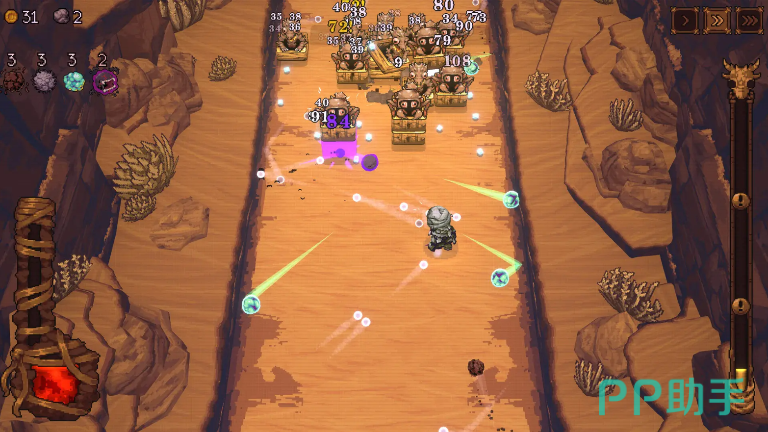 游戏采用“英雄+环境+资源”三位一体的成长模型:玩家需根据所选角色特性规划行动路线,例如利用沉思者的垂直打击能力高效清除砖石障碍,配合场景中具备高弹性的圆球装置进行地形重构与机关联动,逐步拓展安全区域、升级生产设施,并通过资源积累招募更多功能性英雄,形成可持续作战体系。