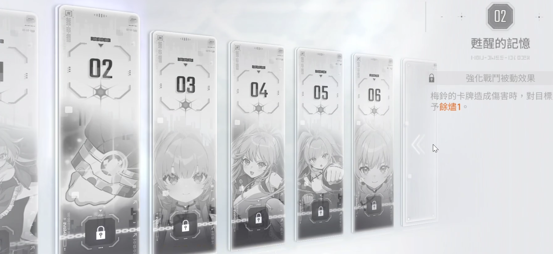 除了命座之外,梅铃的实力还可通过潜力点进行拓展。合理分配潜力点能够进一步优化其输出效率与辅助能力。此外,熟悉梅铃的卡组构成也至关重要。其基础卡组包含一张攻击卡与一张护盾卡,而核心卡牌则具备攻防双重特性,并可在牌库循环中稳定抽到。根据队伍配置需求,玩家可灵活调整卡牌搭配——若队伍缺乏输出,可替换护盾卡以增强进攻性;若需生存保障,则保留防御向配置,实现战术多样化。