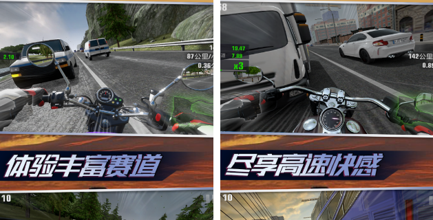 游戏会继承传统的摩托车比赛玩法,简单暴力,另外还会加入很多的模式,其中包括职业模式以及无尽模式。玩家可以根据个人的喜好,然后去做出选择。游戏采用的是第一人称视觉角度加上细腻的音乐效果,还有背景音乐,会带来一种真实的比赛体验。通过比赛不仅可以累积经验,还可以累积金币,能解锁一些比较强势的车辆,迅速的提升车辆的性能。
