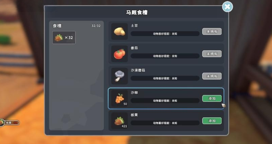 马厩建成后,可前往商人处购买幼马。幼马需经历“成长期→成熟期→驯化期”三个阶段方可成为可骑乘状态。此过程的核心变量为亲密度数值,而亲密度提升依赖持续、稳定的饲料投喂行为。饲料来源包括自产农产品(如燕麦、苜蓿)或商人处购置的成品饲料;不同品质饲料对亲密度增长速率与基础属性加成存在差异,投喂频率与饲料等级共同决定最终坐骑的移动速度、负重上限及耐力恢复效率。