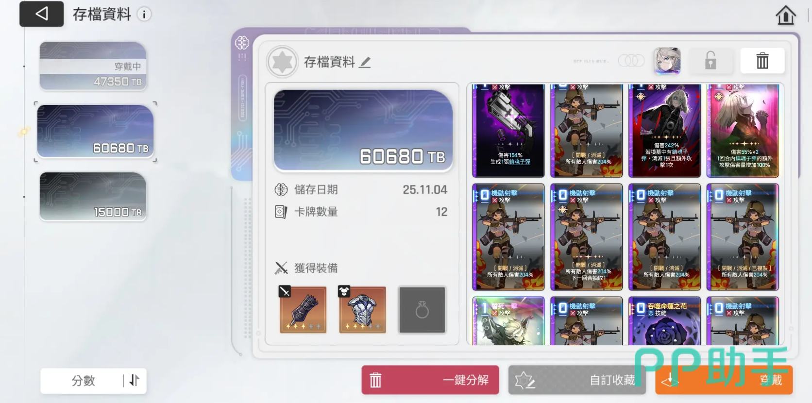 卡牌配置方面,建议优先使用强化类卡牌来补足麦格纳与卡利佩的能力短板;攻击类卡牌则需依据敌方阵容特点及我方构成灵活调整数量;防御类卡牌的合理运用也能进一步巩固团队的抗击打能力。