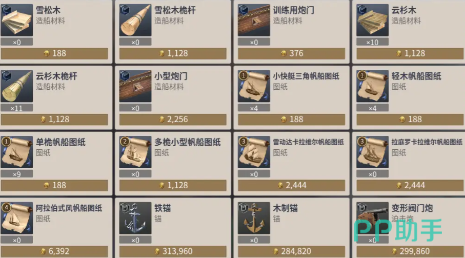 建造船只必须准备两类核心资源:基础材料与达克纳货币。其中,基础材料包括蓝图、木材、龙骨、船桅、炮口等组件,具体需求量取决于目标船只的规模与复杂度。而达克纳货币则用于支付建造费用及相关的建造关税。