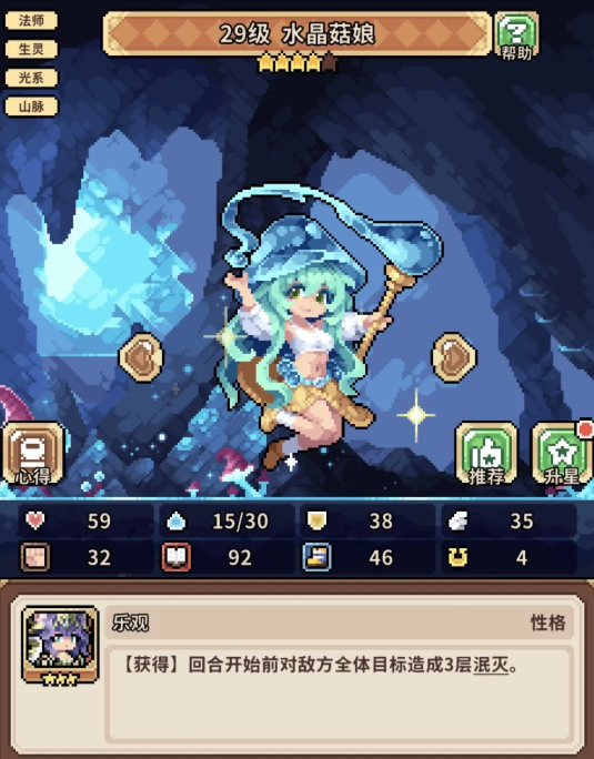 后排则必须锁定宁静水灵。她是整套滋润流运转的“发动机”:不仅提供高频治疗与护盾,更拥有全游戏唯一开局即触发群体滋润层数的能力。该效果不依赖回合数或条件触发,首回合即可生效,最高可叠加150层滋润,直接奠定全队生存与增益基础。因此,无论面对强控阵容还是高爆发BOSS,此组合均具备稳定上场资格。若追求极限输出,中排可选用巨灵之枪,其技能与辰龙的感电效果形成完美共振,进一步放大团队总伤;若侧重稳健运营与资源节约,则水晶菇娘或巨魔监工仍是更优解——二者对角色星级与装备养成压力极低,大幅降低开荒期培养成本。