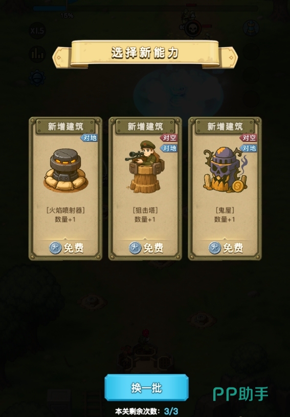 防御塔成长体系是本作深度策略体验的关键环节。每座塔均可通过银币解锁随机强化效果,涵盖伤害加成、攻速提升、特殊机制触发等维度。值得注意的是,建议预留约200银币用于抽取金色强化效果——该类效果具备显著质变能力,能彻底改变单塔的战术定位与实战效能。此外,通关关卡可提升巡逻挂机收益效率,同时务必领取对应星级宝箱,其中包含稀有资源、进阶材料及专属外观奖励。