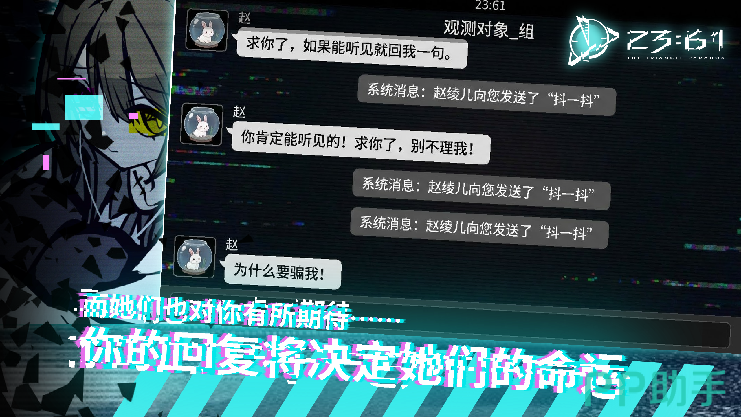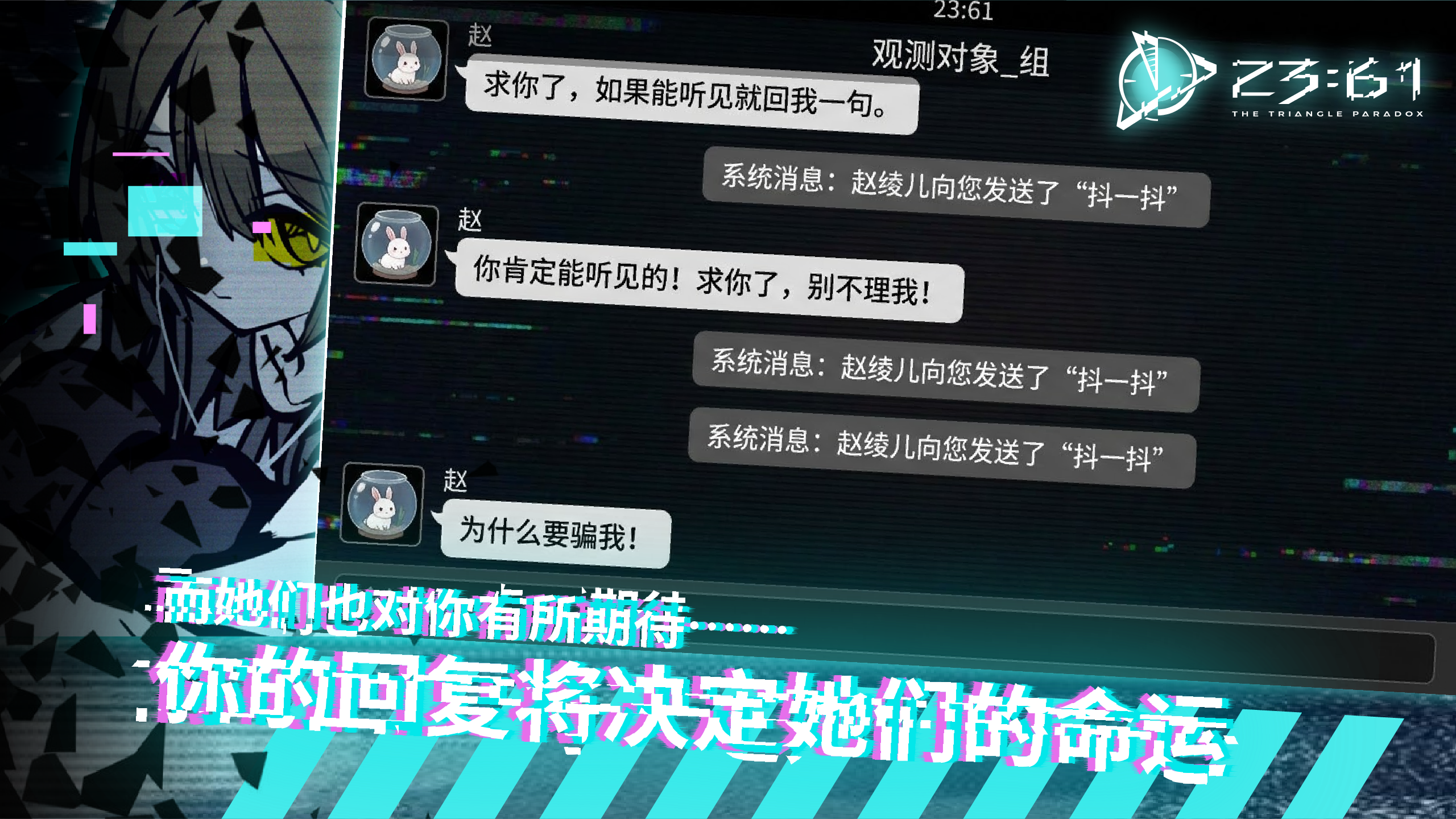 游戏时间锚点设定在虚构时刻“23:61”,这一不存在于现实计时体系中的时间节点,象征着世界陷入无限循环的临界状态。在此框架下,两位少女分别承载着不同维度的因果链,玩家的选择实质上是在重构时间褶皱——保留一人即意味着抹除另一人的存在轨迹,包括其曾参与的所有事件、留下的痕迹乃至其他玩家的记忆映射。
