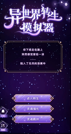 《异世界转生模拟器》是一款很有趣的模拟游戏,玩家将在游戏里饰演一位从一个真实的世界,穿越到另一个世界的角色,开启一段全新的冒险旅程。在这款游戏里,玩家将会去探索各种不同的世界,和各色各样的人物进行交流互动,从而成长为一名强大的冒险家。