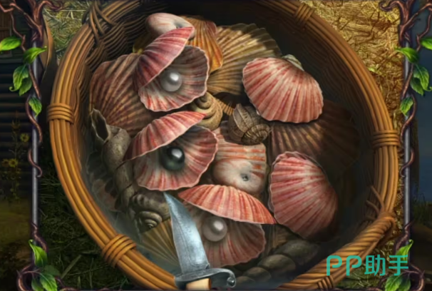 在小屋前面可以看到有篮子,直接就用刀将贝壳撬开,可以获得所需要的黑珍珠,在篮子的边上还有一个容器。点击渔网的位置就可以去寻找物品,在完成寻物之后就可获取火。