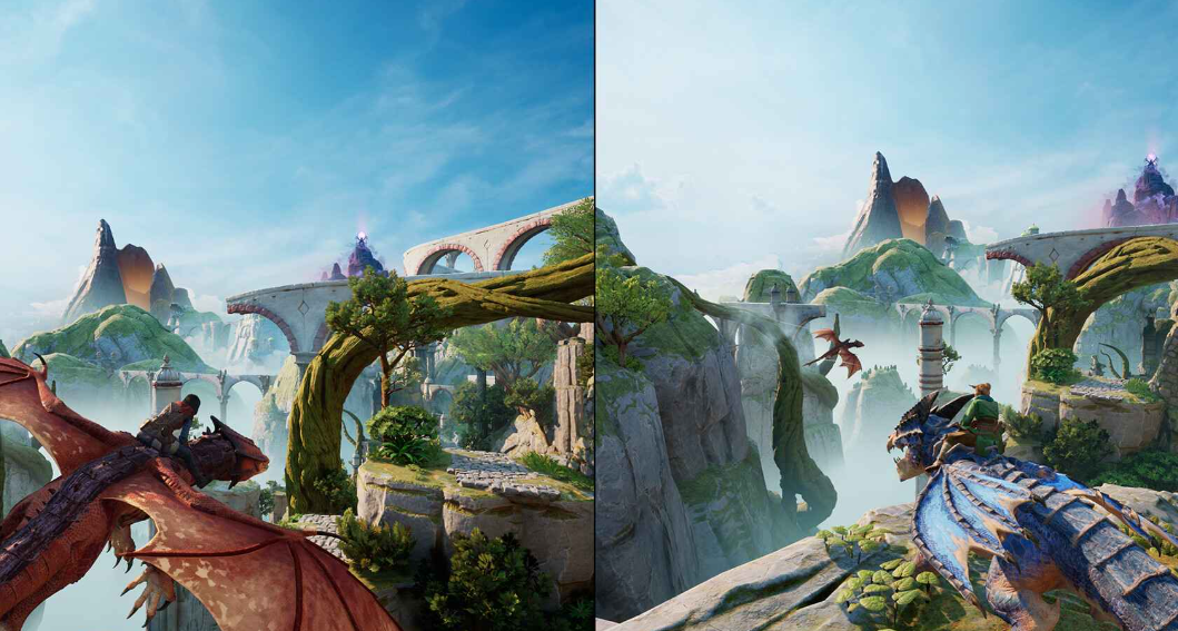 在画面表现方面,《双影奇境》展现出极高的艺术水准。玩家不仅能驾驭巨龙穿梭于星环之间,也能深入高科技都市,与各类机械单位展开追逐战,体验截然不同的世界观碰撞。