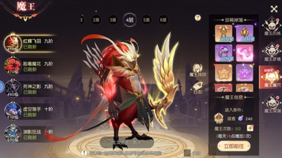 魔王Boss系统是每日必做核心内容。该玩法每日开放两次免费挑战机会,不可跳过或囤积——掉落物包含强化石等刚性需求资源,直接关联角色战力跃升。若遭遇卡关,大概率源于基础战力未达副本阈值,此时应优先回补日常、补足装备强化等级,并检查天神卡牌与宠物技能是否完成关键升级节点。