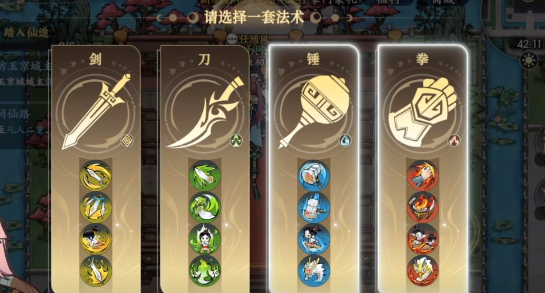 玩家在清风山,就可以轻松的拿到一整套的剑系法术,因此建议没有必要选择剑系,而是选择拳法又或者是剑法。把这些搭配在一起,那自然就能起到一个事半功倍的效果。