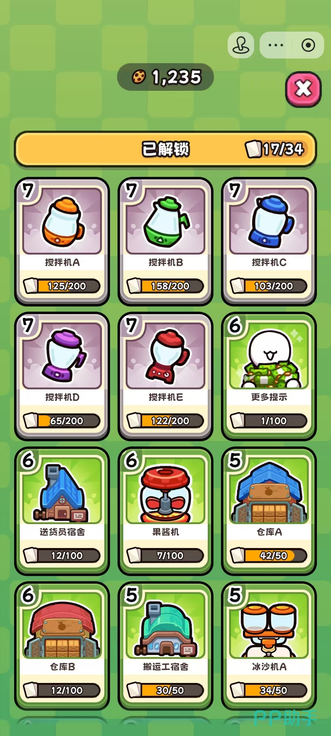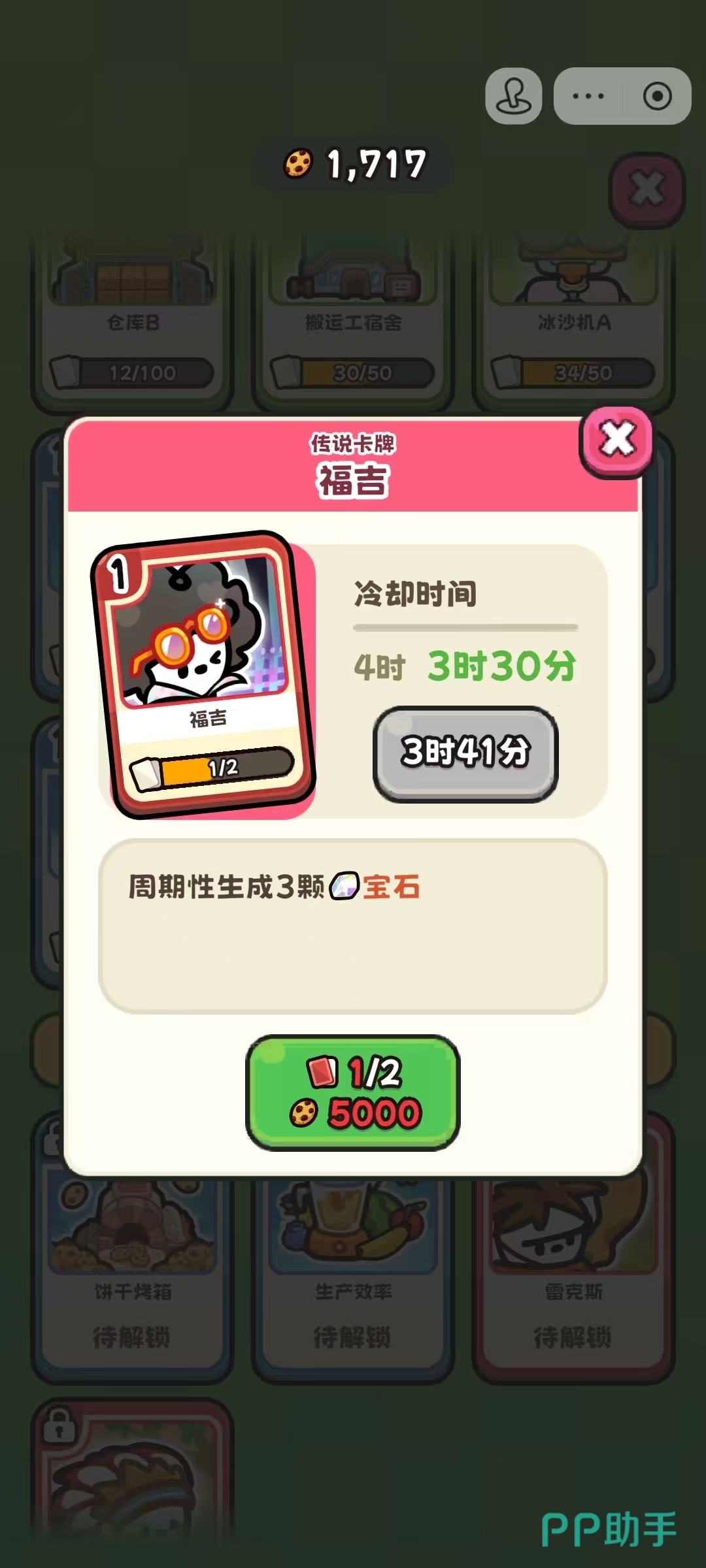 对于零氪或轻度玩家而言,前期应集中资源培养普通与稀有设施卡牌,优先选择能加快生产速度或提升产量的类型。只要条件允许,尽量完成升级,但避免使用钻石强行补足材料,依靠日常积累的饼干逐步推进即可。