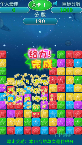 这是一款充满趣味的消除益智游戏。在游戏中,玩家要通过消除星星来达成目标关卡所设定的分数要求,只有成功达到指定分数,才能顺利通关。玩法轻松易懂,独特的魔幻风格为游戏增添了别样的魅力,新奇又有趣。经典的消除玩法搭配新颖的创新道具,让游戏乐趣无穷。当玩家达成目标分数顺利通关后,可以转动一次转盘,有机会获得分数奖励或者实用的游戏道具。