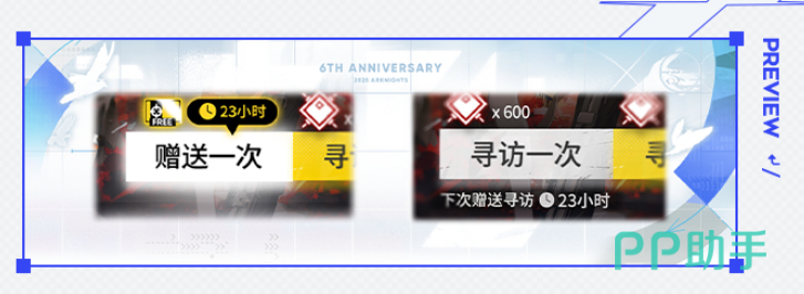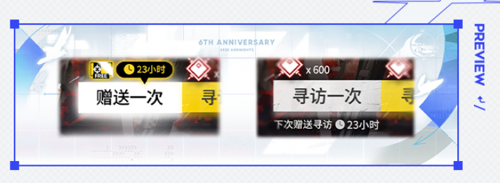 除了签到奖励,庆典期间每个博士都可以在“布道自由”限定寻访中免费进行一次每日寻访。别小看这个福利,毕竟你永远不知道,一次免费的寻访会带来怎样的惊喜!