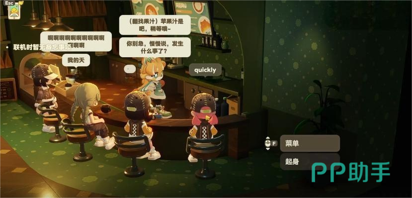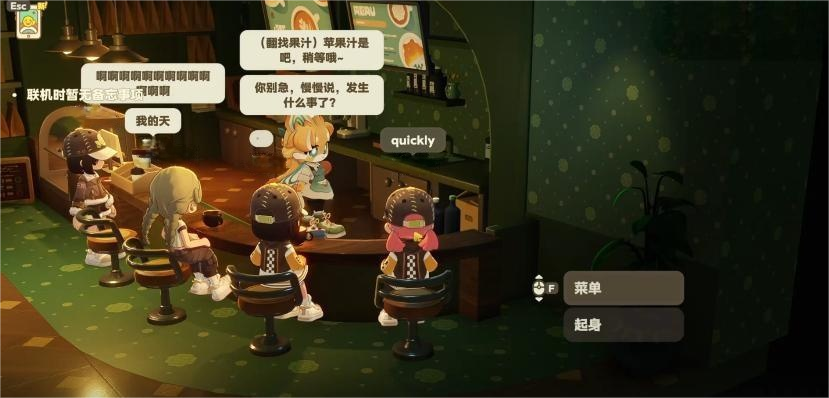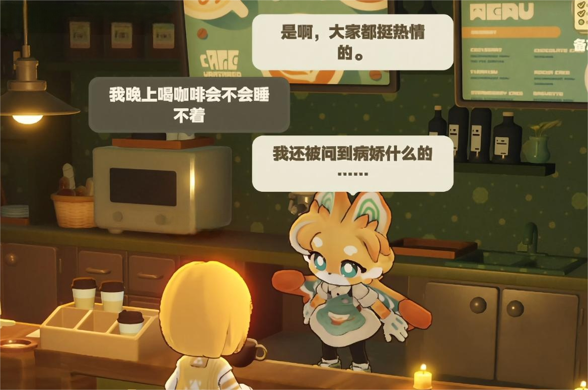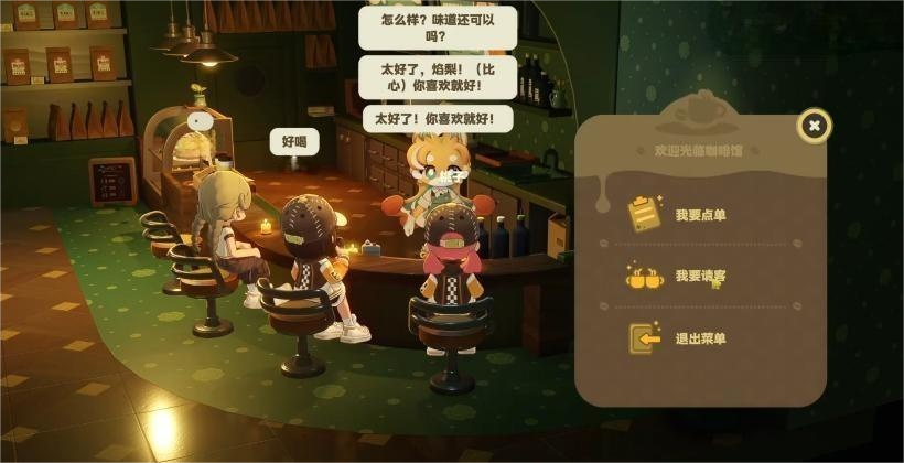 除情感陪伴外,娜洛还具备明确的功能性价值:玩家可在咖啡馆内向她下单咖啡、甜点等消耗品;在联机模式下,她亦能协助其他玩家完成点单操作,显著提升多人协作效率。这一设定使其成为聚会场景下的核心枢纽角色,兼顾实用性与趣味性。