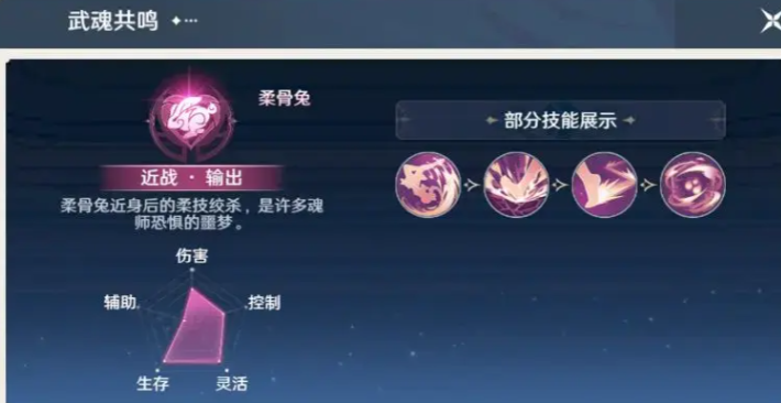柔骨兔:近战输出半肉的定位还是比较独特的,这一个武魂就可以让使用者拥有比较出色的近战能力。可以直接打出高额的伤害,而且还会具备防御的能力,可以承受一部分的伤害,在战斗的过程中可以灵活的穿梭。