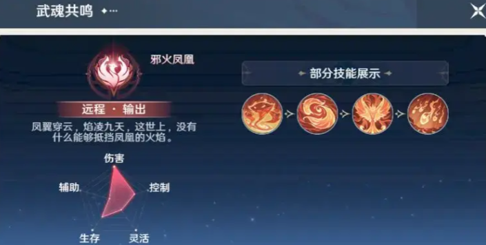 邪火凤凰:这就是一个远程输出武魂,会比较擅长远距离的攻击。可以给敌人直接造成大面积的伤害,在团队战争的过程中就可以站在后排去持续的输出,起到火力压制的作用。