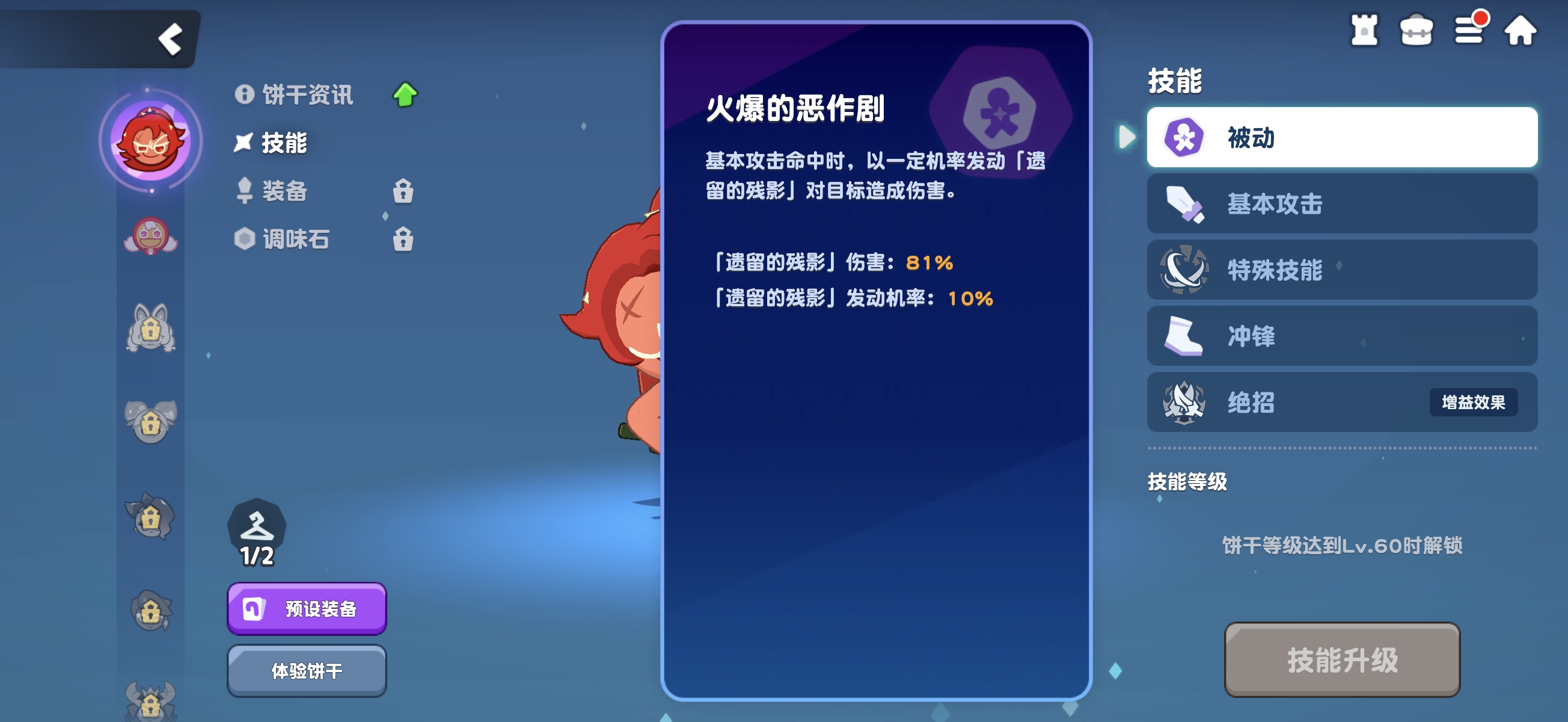 提到饼干人IP,相信许多玩家都不陌生。《饼干人联盟》作为一款以各类拟人化饼干为主角的策略卡牌手游,凭借其独特的角色设定和丰富的战斗系统收获了大量粉丝。本文将聚焦于游戏中人气颇高的火属性输出角色——甜辣酱饼干,深入解析其强度定位、技能机制与实战适配性。