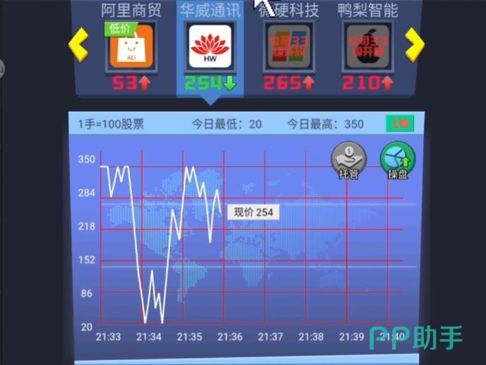 接下来,就是要学会如何玩转股市。在明日大亨中,股市的玩法非常简单,只要记住四个字——低买高卖。玩家等级达到15级之后,便可以进入股市进行股票的买卖了,此时低价买进高价卖出,如此重复多次,便可以赚取不少的资金了,如果能花费一些金币提升一些买入手数,那么赚钱的效率将会大大提升,成为亿万富翁也不是梦了!