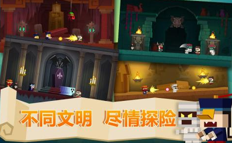 有极其丰富的英雄角色可任意选择,包括牛仔、警察、游侠等,每个都有不同的特色与战斗属性。作为古墓英雄的你,一定要灵活应用跳跃以及射击技巧,这样才有机会战胜更多的敌人。游戏加入非常精美的像素画风将背景设定在古墓当中充满挑战,充满谜题,音效更是相当逼真,营造出足够神秘又非常恐怖的氛围。多样化具有特色的古墓场景,每个都有不同的谜题与挑战模式,需不断探索解密才能够不断前进。