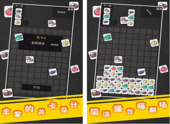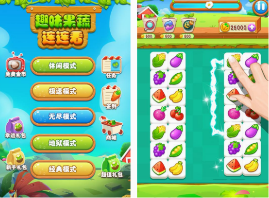 这款以消除为玩法的游戏中,也是以常见的蔬菜和水果进行设计的,在每次闯关的过程中,就会有很多类型的食物。通过点击三个或以上相同的类型,保证在同一个直线或者是斜线,就可以进行消除,玩家也能获得相应的分数。作为老少皆宜的游戏,如果你想要获得更高分数的情况下,必须要在玩的过程中仔细的观察,存在很多的关卡。