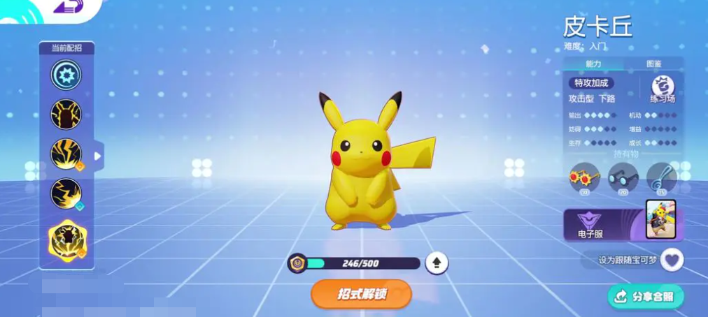皮卡丘拥有远程活力充足和灵活骚扰敌人能力,而闪焰王牌则能在远距离对敌人造成高额暴击伤害。然而这类宝可梦的血量通常较低,需要玩家在操作时学会放风筝,避免过度前压被敌人集火。