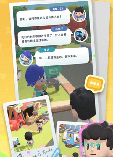 美术层面采用低多边形Q版3D建模,搭配高饱和暖色系光影处理,有效消解末日题材常见的压抑氛围。从自动灌溉的发光麦田,到锈迹斑斑却仍运转的旧式火车站,场景细节兼顾真实质感与童话感表达。配乐系统采用情境自适应机制:耕作时浮现轻盈木琴旋律,战斗中切换为紧凑电子节拍,环境音效亦随昼夜更替与天气变化实时响应,强化沉浸式体验层次。