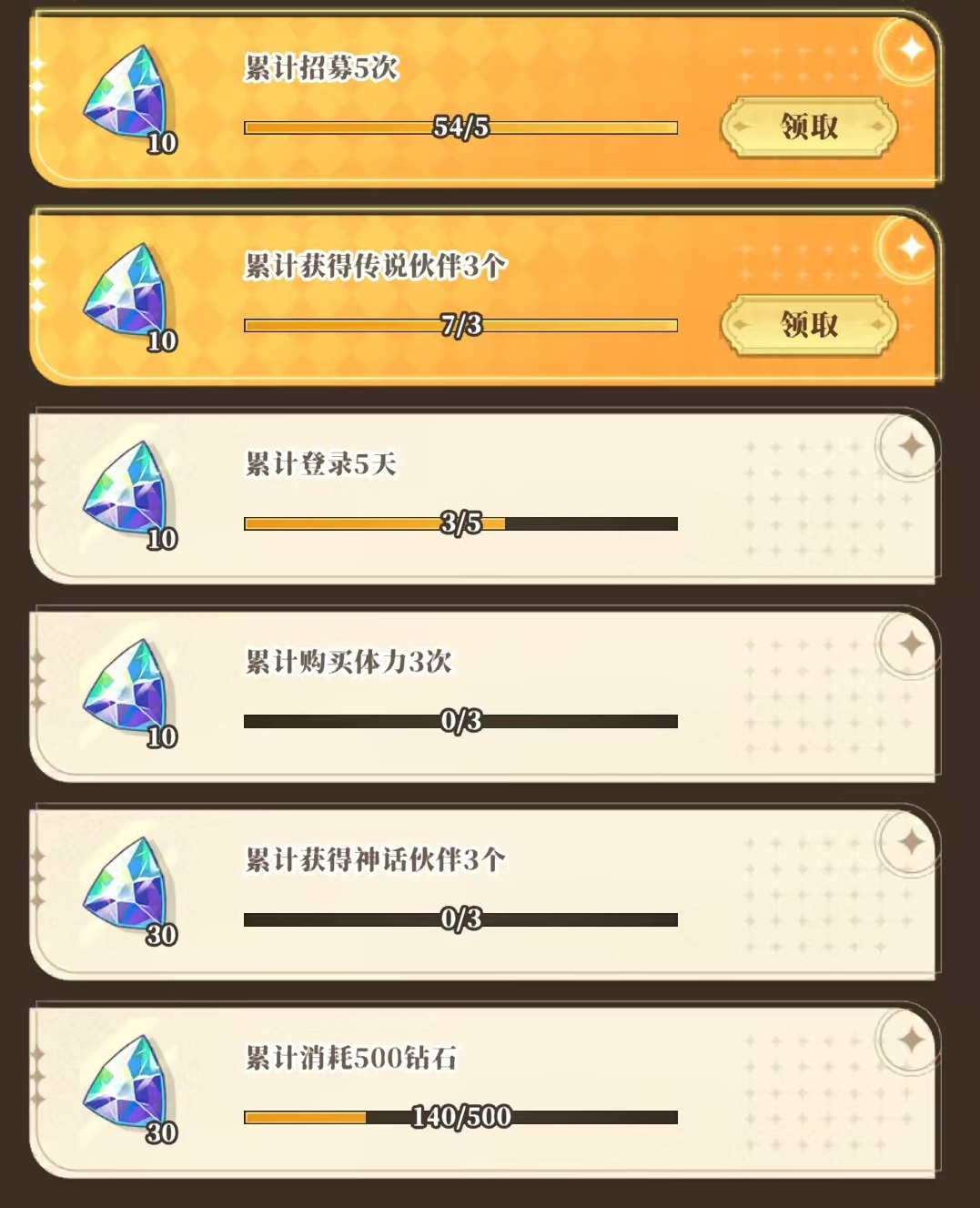 免费获取钻石的第一梯队为日常循环任务体系。每日任务完成可累积活跃度,达指定档位后即可领取对应数量钻石;周常任务延续相同逻辑,按自然周刷新,奖励更丰厚;成就系统则为一次性节点奖励,涵盖主线通关、副本突破、角色培养等多元维度,满足条件即刻发放钻石。第二梯队为战令系统中的“冒险旅记”分支——该模块不设门槛,玩家仅需推进主线进度至指定关卡,即可解锁钻石奖励;若选择升级为高级战令,同一关卡奖励将提升至原档位的1.5倍以上。第三梯队为社交激励机制:冒险榜、等级榜、战力榜等实时榜单,不仅体现个人实力,还设有全服共享奖励池,即使未登顶,只要榜单开放期间登录游戏,即可领取基础钻石馈赠。