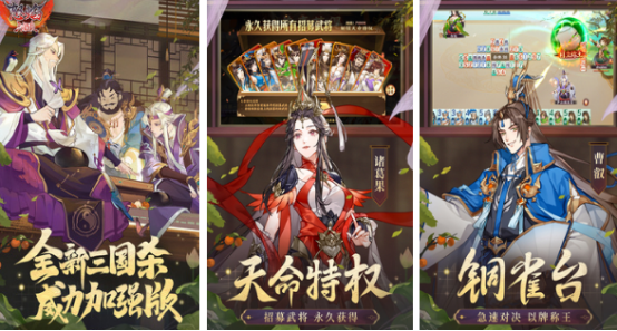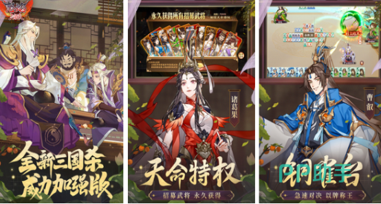 三国期间拥有较多历史武将,也发生了很多历史战争,直到现在有关于三国的历史,让大家回味无穷,也推送出很多三国卡牌手游。丰富的角色与卡牌收集系统相结合,可将普通卡牌升级成超级英雄,拥有极强的战斗力。这些游戏普遍都有极强策略性,通过互相克制的关系来制定策略,最终在战斗中取得优势,小编为大家推荐几款热门的游戏吧。
