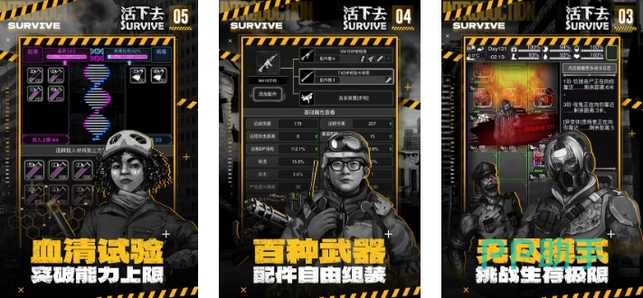 游戏的背景采用阴暗而惊悚的色调,配以沉闷且富有旋律的背景音乐,构建出一个充满僵尸和行尸走肉的恐怖末日景象。玩家需要操控主角在类似地牢的环境中进行探索,寻找武器、食物、水和安全屋等资源,同时消灭挡在面前的僵尸。游戏采用文字探索模式,虽然画面简洁,但剧情和氛围的塑造非常到位,给玩家带来极强的代入感。如果喜欢末日生存类角色扮演游戏,绝对值得一试。