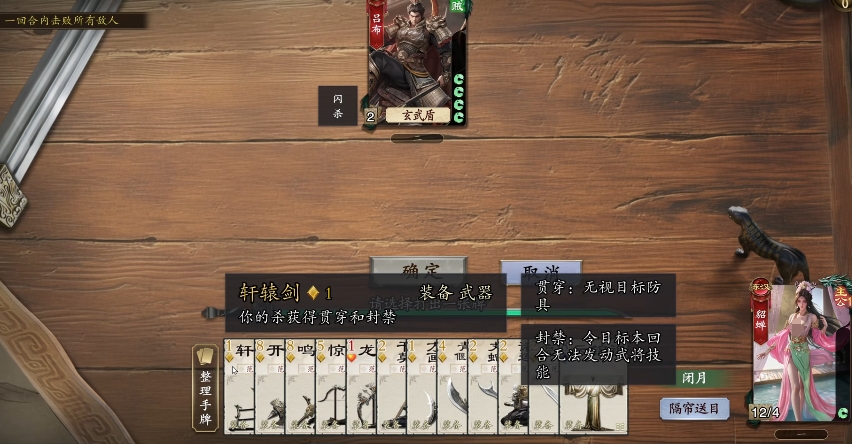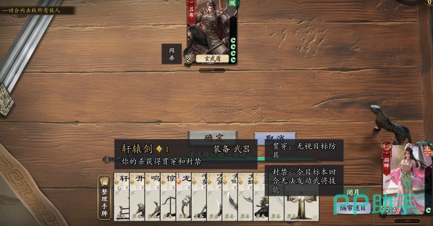 05:这一关大家可以先装备上丈八蛇矛,摸两张杀以增强攻击力,接着依次装备轩辕剑、鸣鸿刀、开山斧、锦袍以及连弩,当装备到最后一件武器时,会达到装备上限,此时只需弃置最初的丈八蛇矛即可,最后对吕布发起猛烈攻击,依次打出两张杀,触发开山斧的特效,弃牌加伤,两刀便可砍死吕布,赢得胜利。