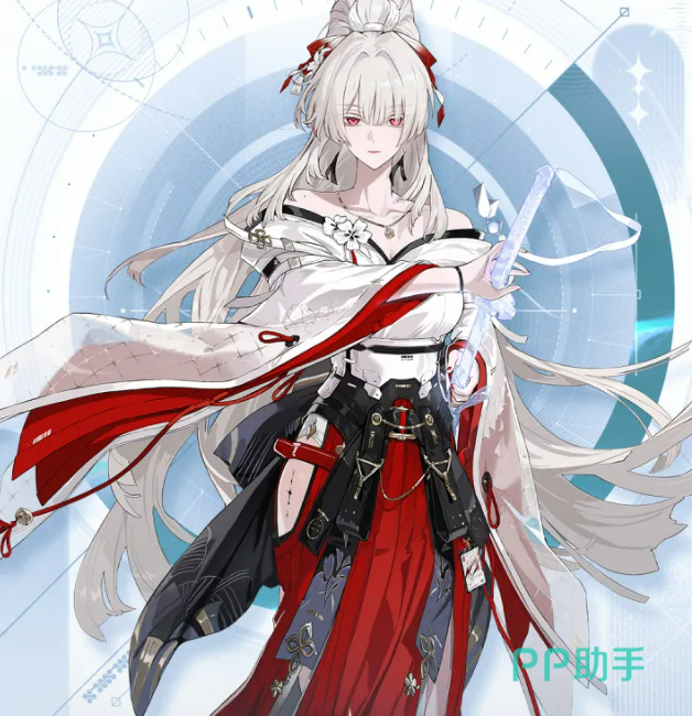 绯雪隶属于拉海洛特别对策组,身份设定兼具神秘感与现实张力。战斗中可自由切换两种形态:常态下身着红裙、银发垂落;释放终极技能后,外观转为蓝白配色的冰巫女造型,视觉表现极具层次感与动态冲击力。其核心异能“预求身”以铃铛为媒介,通过预演未来自身状态并调用对应力量,形成独特的时间联动机制。