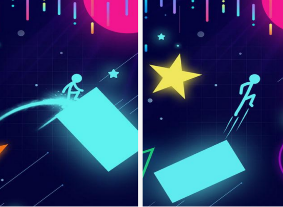 当你成为了游戏当中的火柴人主角以后,既能享受简洁的画面,也能展开休闲冒险,不断的完成挑战,在控制火柴人的时候,沿路上会遇到很多的物品,通过不断的点亮周围的物品以后,获得发光的星星顺利通关。作为竖屏的手游,屏幕上有左跳右跳这两个按键,通过单手,就能点击使里面的火柴人,根据点击的方向完成跳跃。