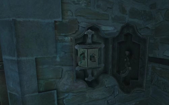 然后大家将最初得到的压花圆盘放入画像中,揭示出盾牌部件,可以点击查看其中的信息,随后将折叠托架放到里面去,这个时候再移动四边的锁扣,将整个盾牌都组装成完成之后,大家就需要在八口棺材上找到特定的图案,这些图案是跟下面用到的密码有关的,所以要记住,这个时候可以旋转祭坛后面的圆盘,并将盾牌插入其中,根据棺材上提示的图案密码,解开机关,最终获得钥匙和木头装饰。