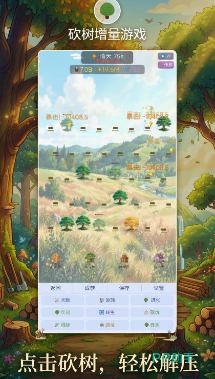 游戏构建了一条清晰的成长路径:从单棵幼苗起步,逐步拓展为规模化伐木工坊乃至资源帝国。过程中,玩家可升级斧头、解锁自动砍伐、提升木材转化效率,并不断拓展林区范围。每个阶段的数值跃升均配有可视化提示与音效反馈,强化正向激励,满足用户对养成进度与阶段性成就的心理期待。