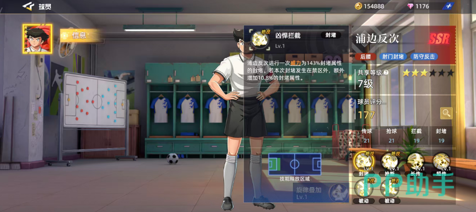 另一项被动“封堵合奏”则基于浦边反次自身的封堵属性提供2.8%增益,并激活【凶悍拦截】技能。使用后,我方禁区内所有球员将获得6%的基础属性封堵加成,效果可持续50秒,并最多叠加三层。每次叠加都会刷新持续时间,合理运用下甚至可实现全场覆盖,极大强化禁区防守稳定性。