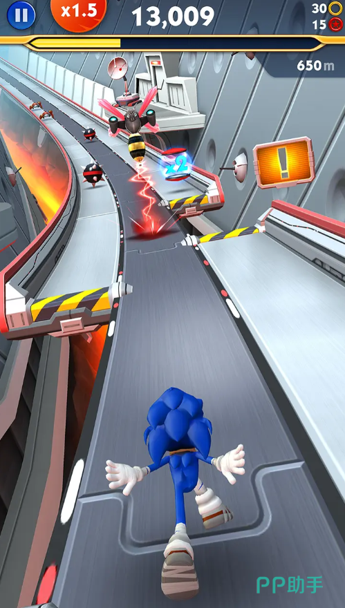 索尼克音爆这款游戏作为跑酷类型的游戏,在游戏中会有金环这个道具。一般玩家收集金环之后就能够提高分数。当然也可以保护玩家,避免玩家受到伤害。其实道具还有能量球,一旦玩家有了能量球之后就可以提高速度,在短时间内可以快速的冲刺,可以躲避障碍物和怪物。